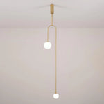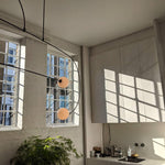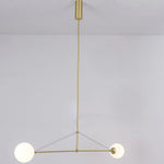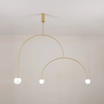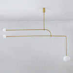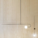 This designer pendant lamp embodies a sleek, minimalist aesthetic, characterized by bold, clean lines and a sophisticated silhouette. Illuminated by multiple warm light sources and softly diffused by premium opaline glass, the suspended design creates a harmonious balance of simplicity and elegance in any contemporary space.