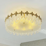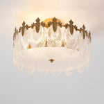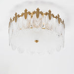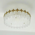The opulent Intricate Round Glass Chandelier is composed of hand-shaped glass petals with delicate clear tints, forming an elegant frame. Each petal is crafted from premium glass and finished in a luminous gold tone, while golden metal accents are seamlessly integrated to enhance its shimmering silhouette. Crafted from sturdy iron and high-quality glass, this chandelier combines artistry and durability to create a stunning focal point in any luxurious interior.